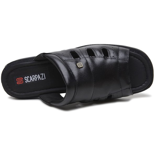 Chinelo de Couro Masculino Pelica Scarpazi 019 Preto